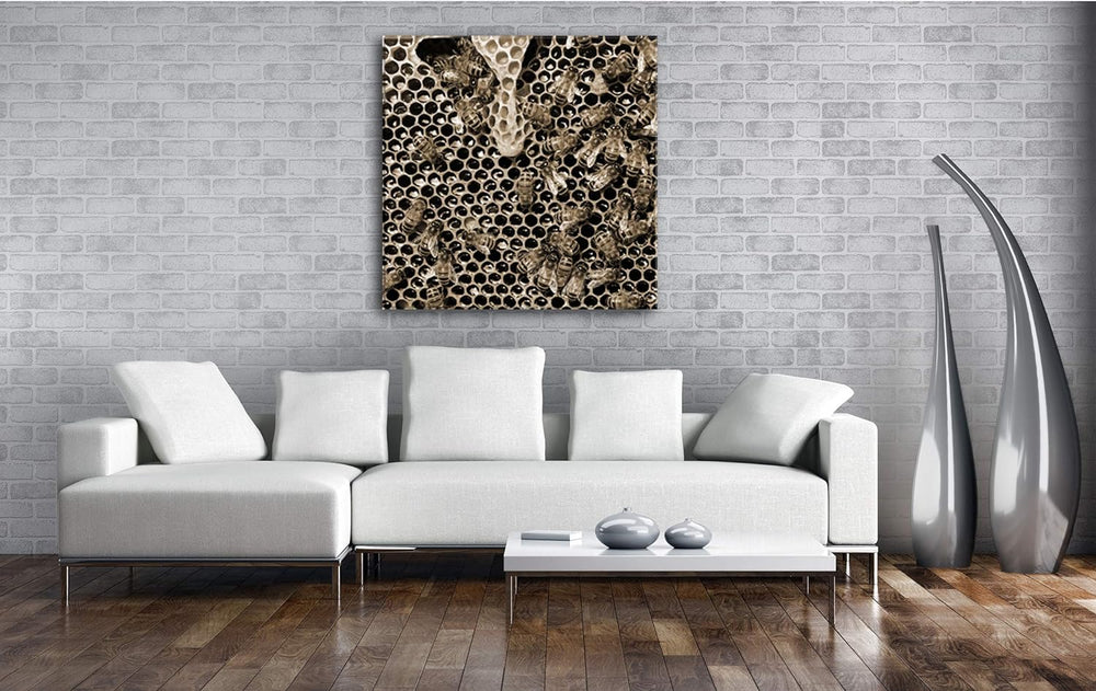 deyoli atemberaubende Honigwabe mit Bienen im Format: 70x70 Effekt: Sepia als Leinwandbild, Motiv au