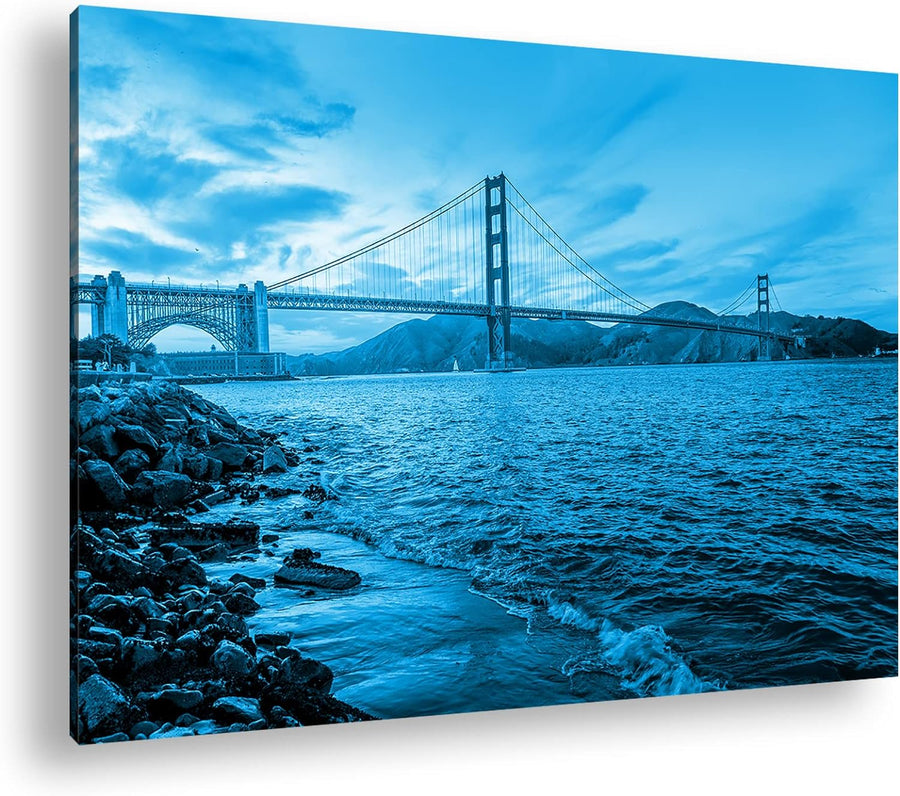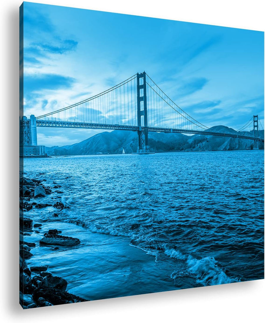 deyoli atemberaubende Hängebrücke Format 100x70 Effekt: Monocrome Blau als Leinwandbild, Motiv ferti