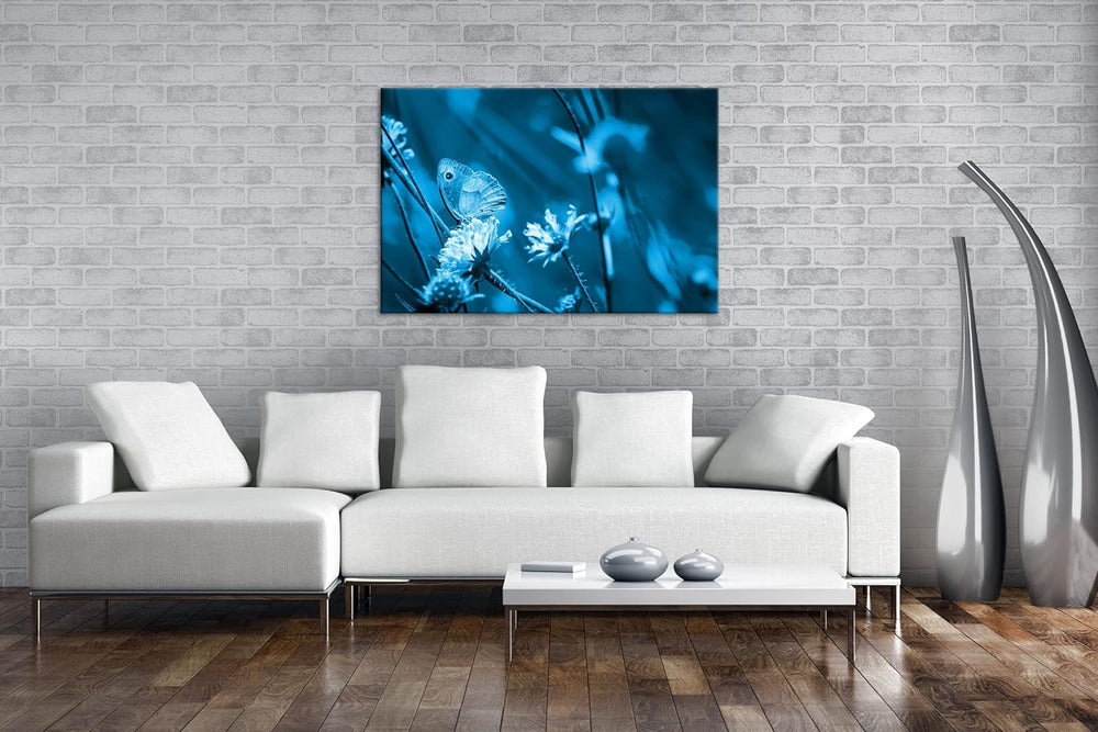 deyoli Atemberaubende Blumenwiese Format: 80x60 Effekt: Monocrome Blau als Leinwandbild, Motiv ferti