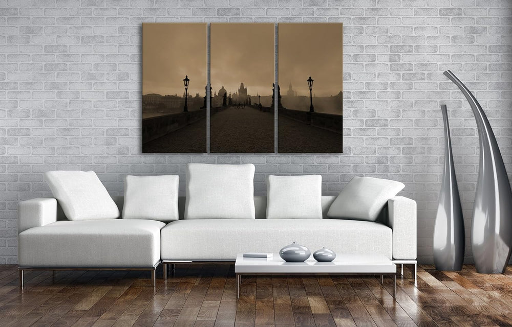 deyoli atemberaubende Brücke in Prag Format: 3-teilig 120x80 Effekt: Sepia als Leinwandbild, Motiv f