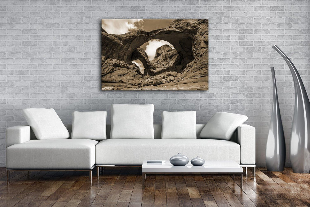 deyoli atemberaubende Gesteinsformationen Format: 80x60 Effekt: Sepia als Leinwand, Motiv fertig ger