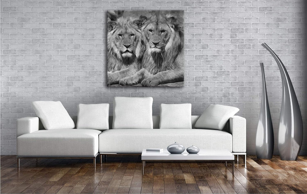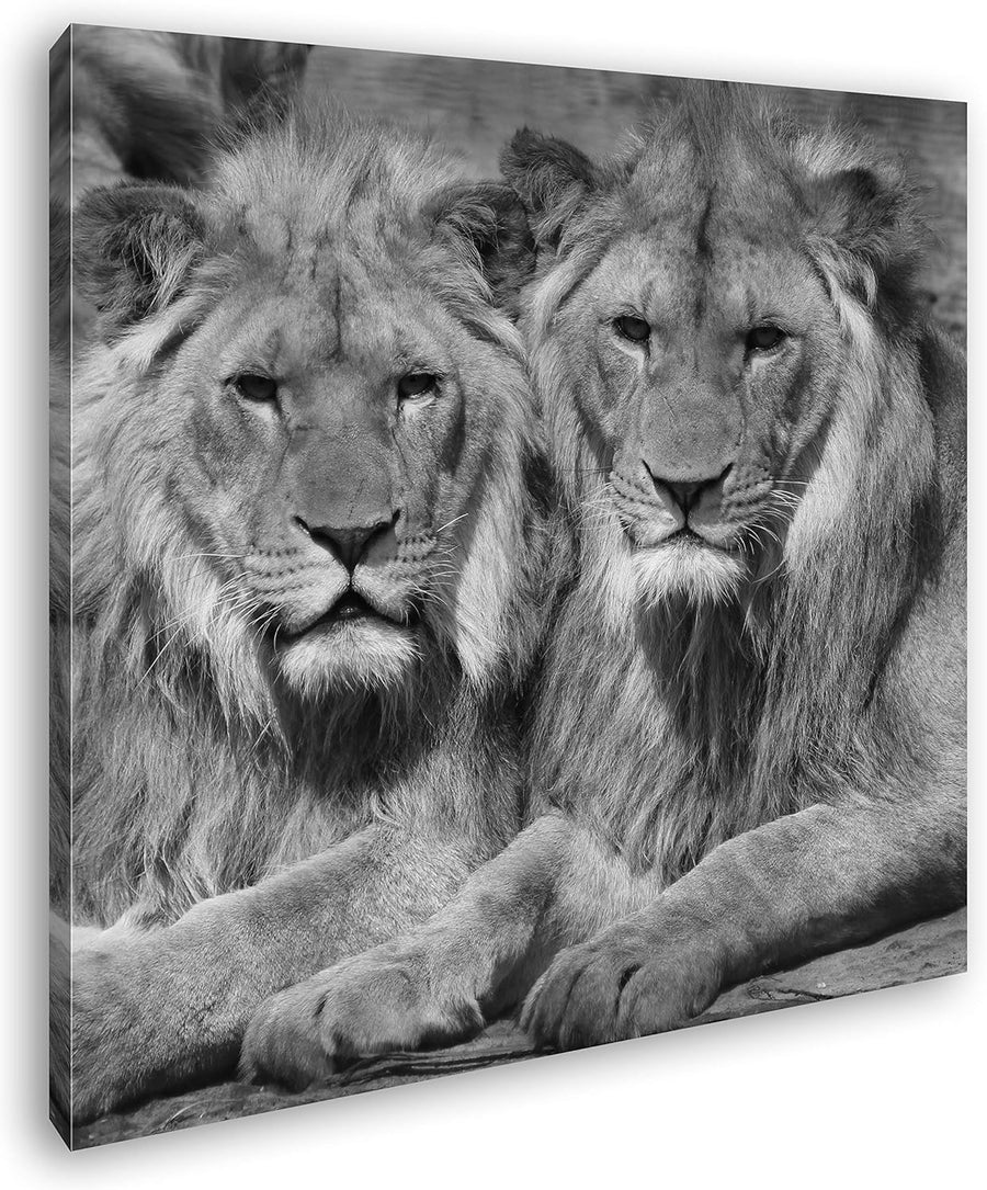 deyoli Atemberaubende Löwen Format: 70x70 Effekt: Schwarz&Weiss als Leinwandbild, Motiv auf Echtholz