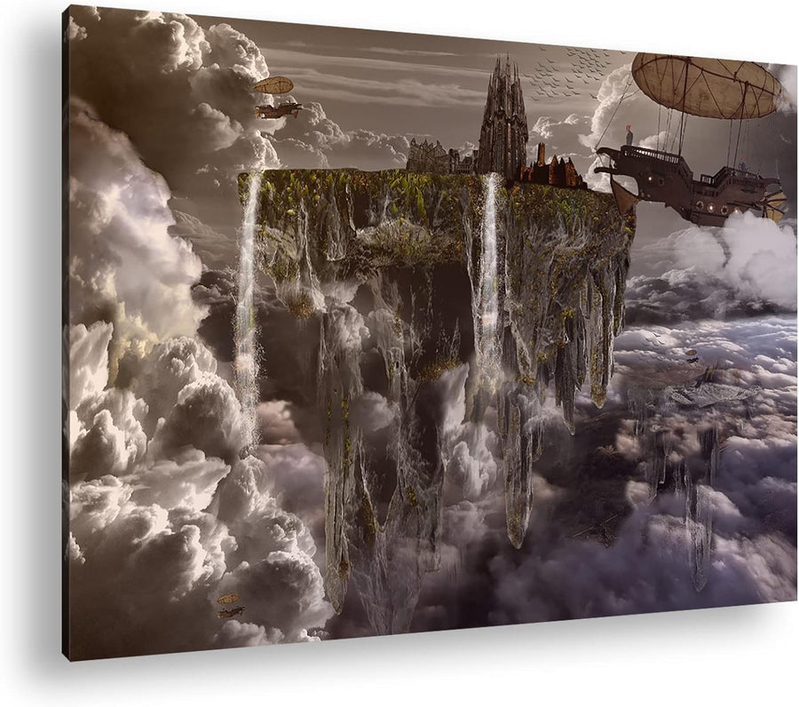 deyoli atemberaubende schwebende Stadt im Format: 80x60 als Leinwandbild, Motiv fertig gerahmt auf E