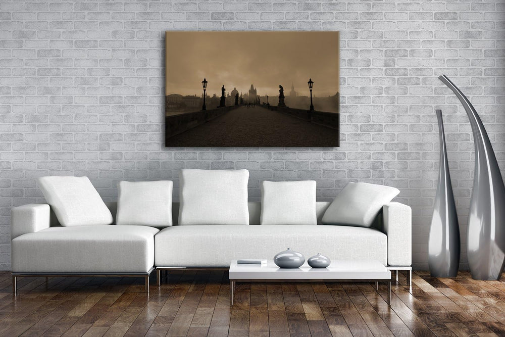 deyoli atemberaubende Brücke in Prag Format: 100x70 Effekt: Sepia als Leinwandbild, Motiv fertig ger