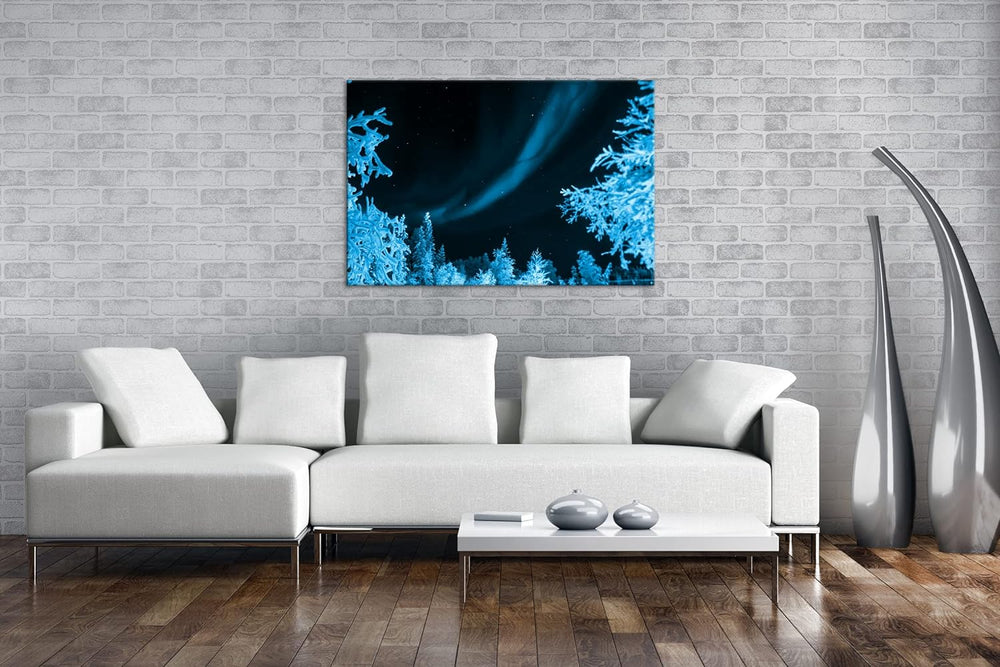 deyoli Atemberaubende Nordlichter Format: 80x60 Effekt: Monocrome Blau als Leinwandbild, Motiv ferti