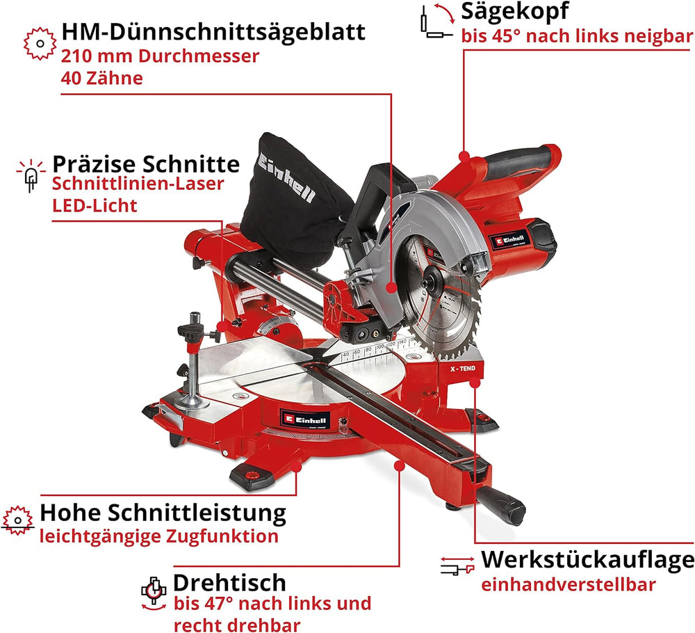 Einhell Akku-Zug-Kapp-Gehrungssäge TE-SM 36/210 Li - Solo Power X-Change (Lithium-Ionen, leichtgängi