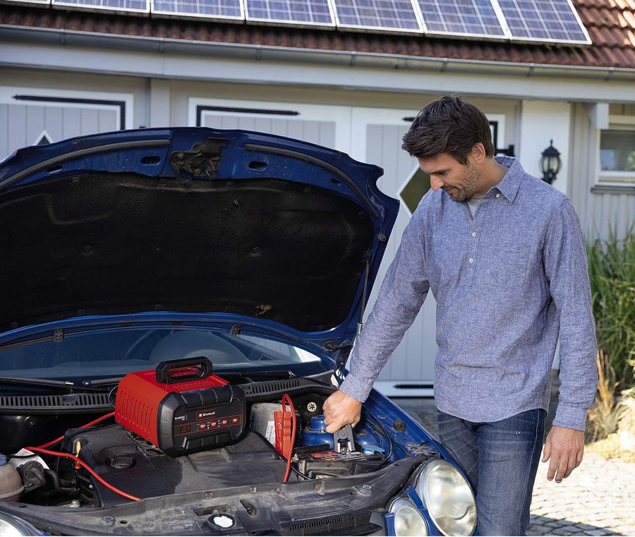Einhell Batterie-Ladegerät CC-BC 5 (eingebautes Amperemeter, Stahlblechgehäuse) & Starthilfekabel BT