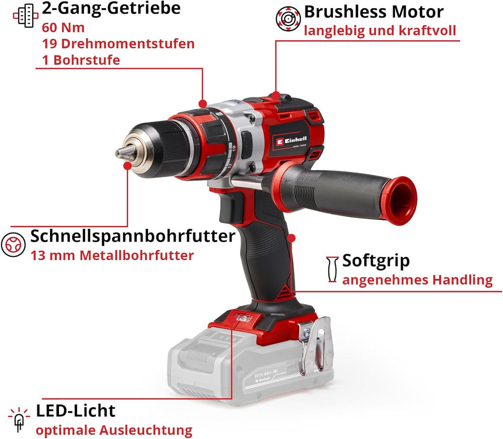 Einhell Akkuschrauber TE-CD 18 Li Brushless Solo Power X-Change (Li-Ion, Rot, 18 V, 2 Gang, 60Nm/Bru