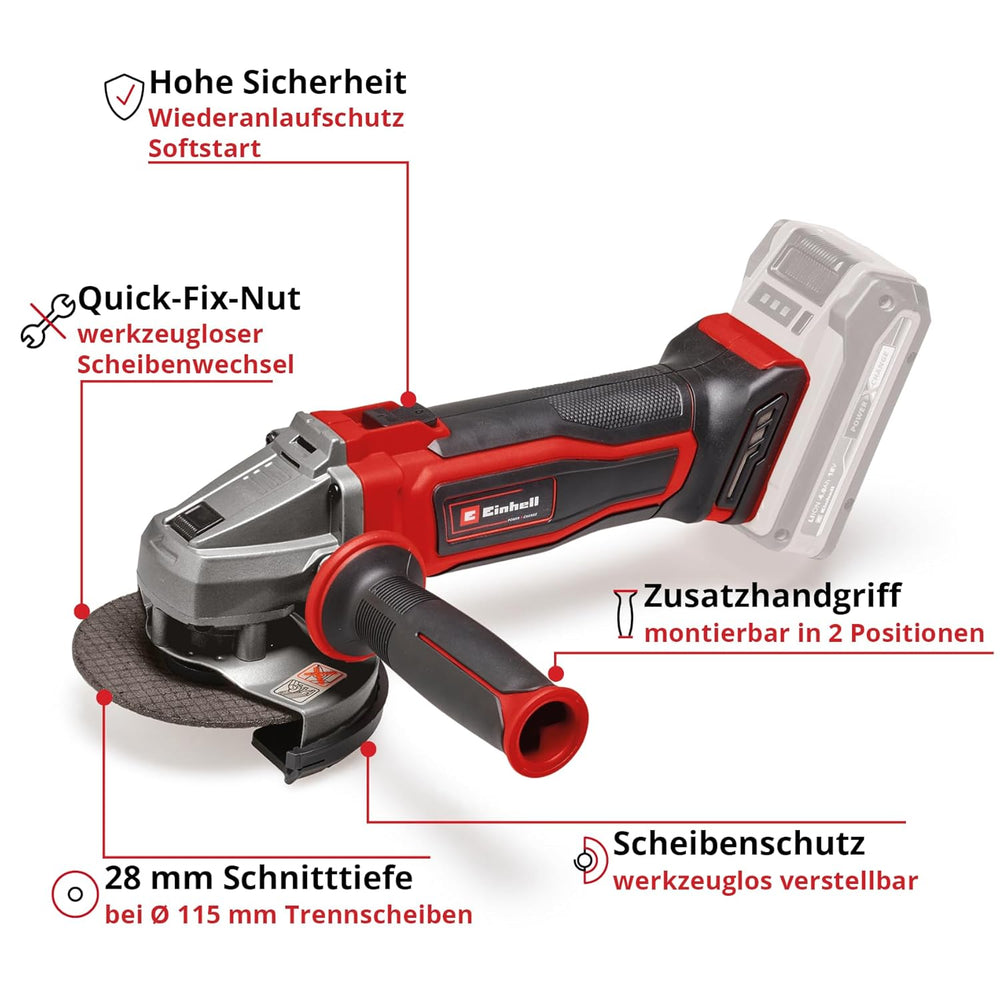 Einhell Akku-Winkelschleifer TE-AG 18/115 Li Power X-Change (Li-Ion, 8.500 min-1, Wiederanlauf-, Übe