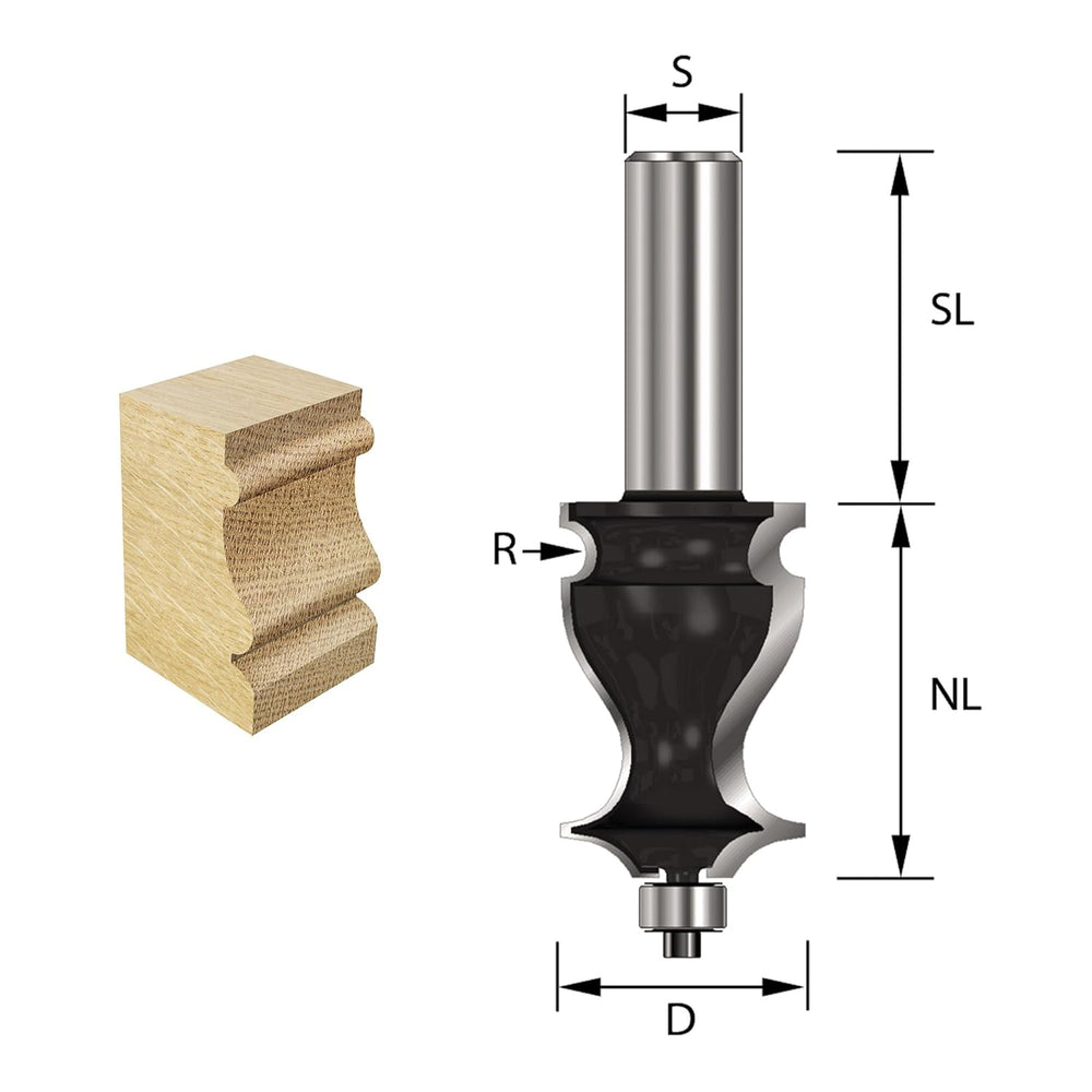 ENT 14850 Dekorativer Profilfräser HW, Schaft (S) 8 mm, Durchmesser (D) 22,2 mm, NL 25,4 mm, R 3,2 m