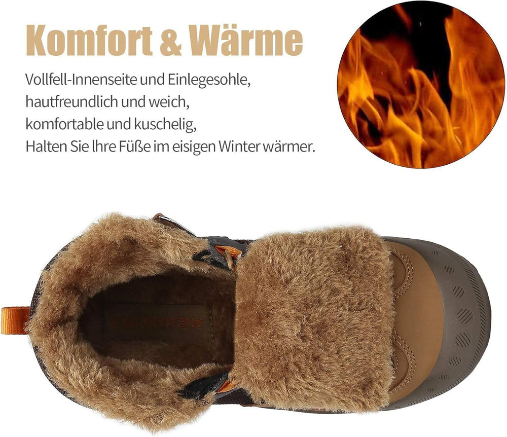 Mishansha Kinder Winterschuhe Gefüttert Winterstiefel für Jungen Mädchen Gr.24-38 25 EU Braun Schwar