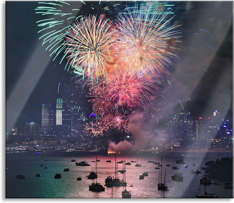 Boot auf See Feuerwerk Herdabdeckplatte & Spritzschutz aus Echtglas | Für Herd-Kochfelder | 60x52 cm