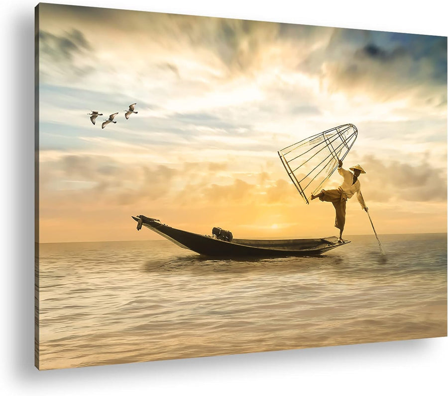 deyoli verspielter Fischer auf seinem Boot Format: 120x80 als Leinwandbild, Motiv fertig gerahmt auf