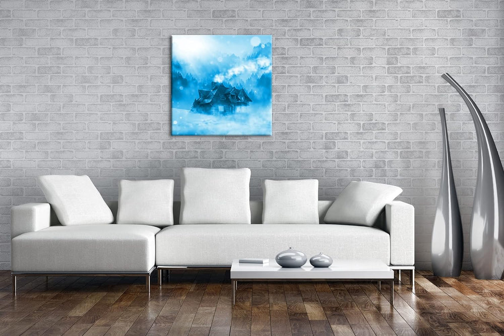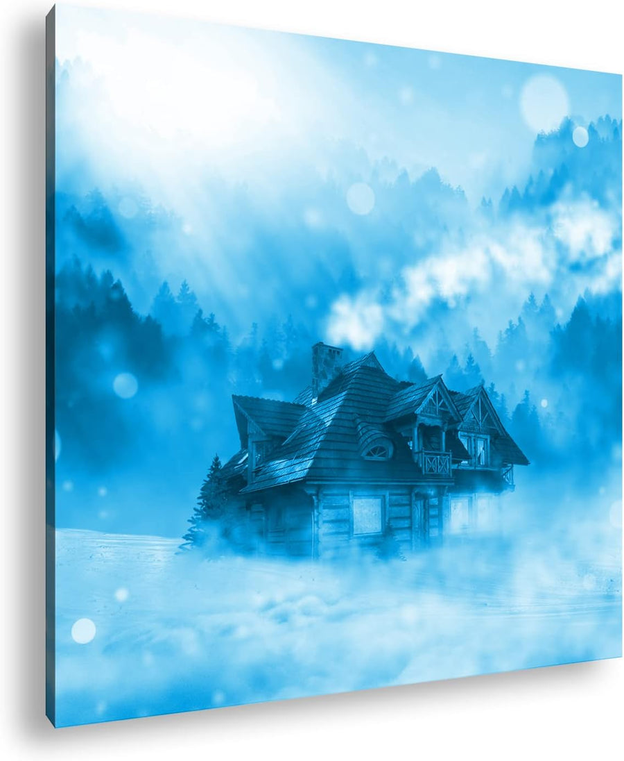 deyoli verschneite Berghütte Format: 70x70 Effekt: Monocrome Blau als Leinwand, Motiv fertig gerahmt