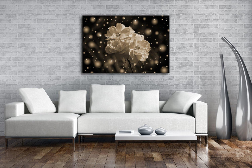 deyoli verschneite rosa Blumen Format: 80x60 Effekt: Sepia als Leinwand, Motiv fertig gerahmt auf Ec