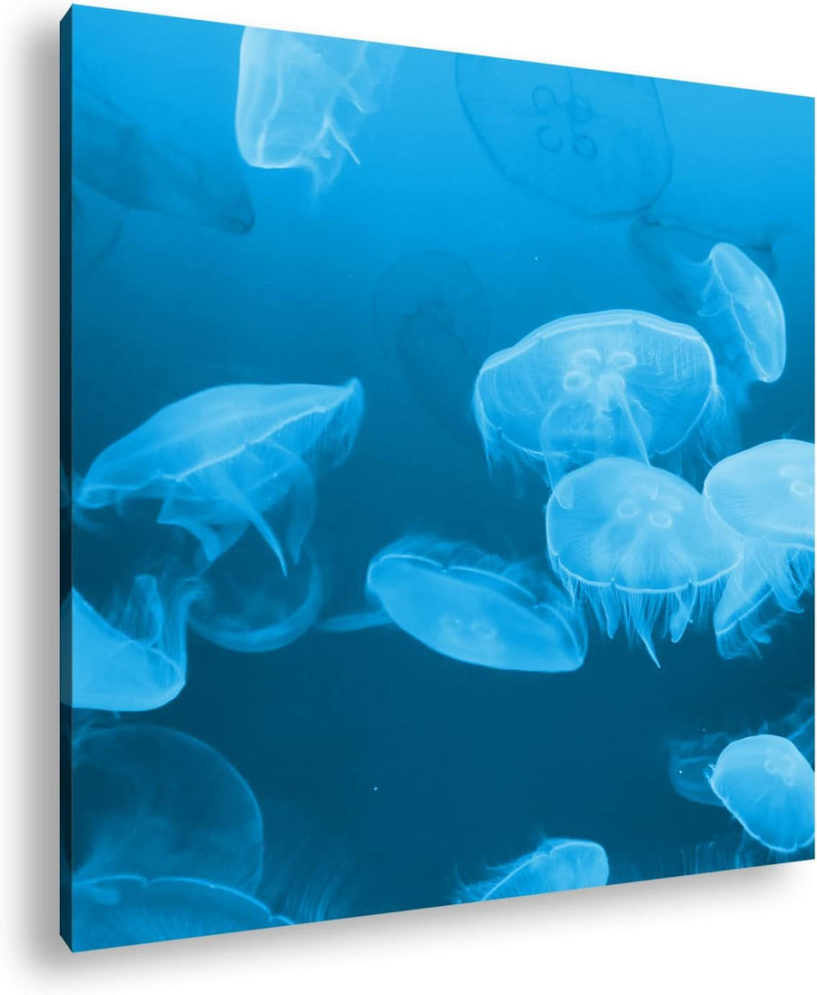 deyoli viele Blaue Quallen Format: 70x70 Effekt: Monocrome Blau als Leinwandbild, Motiv fertig gerah