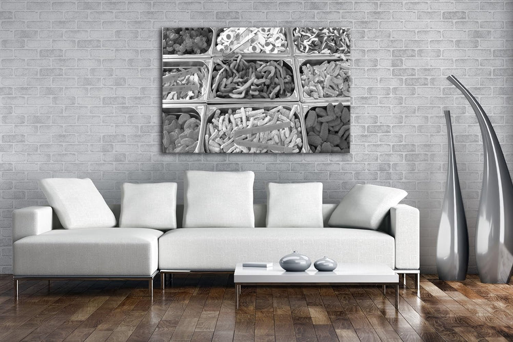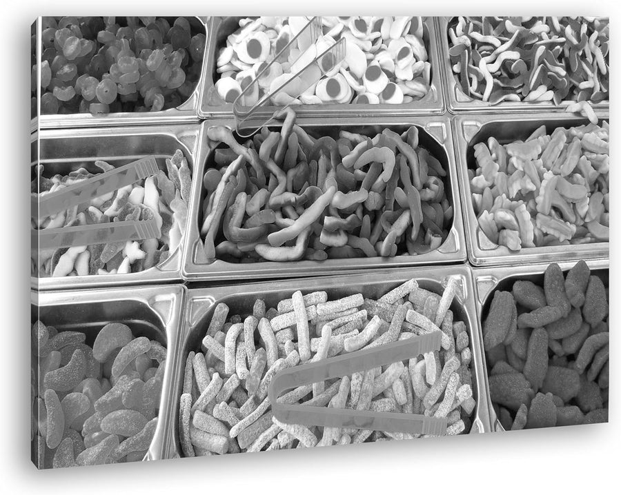 deyoli viele bunte Süssigkeiten Effekt: Schwarz/Weiss im Format: 80x60 als Leinwandbild, Motiv ferti