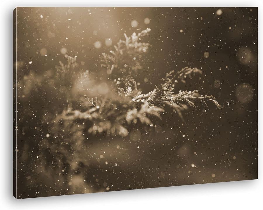deyoli verschneiter Nadelzweig Format: 80x60 Effekt: Sepia als Leinwand, Motiv fertig gerahmt auf Ec