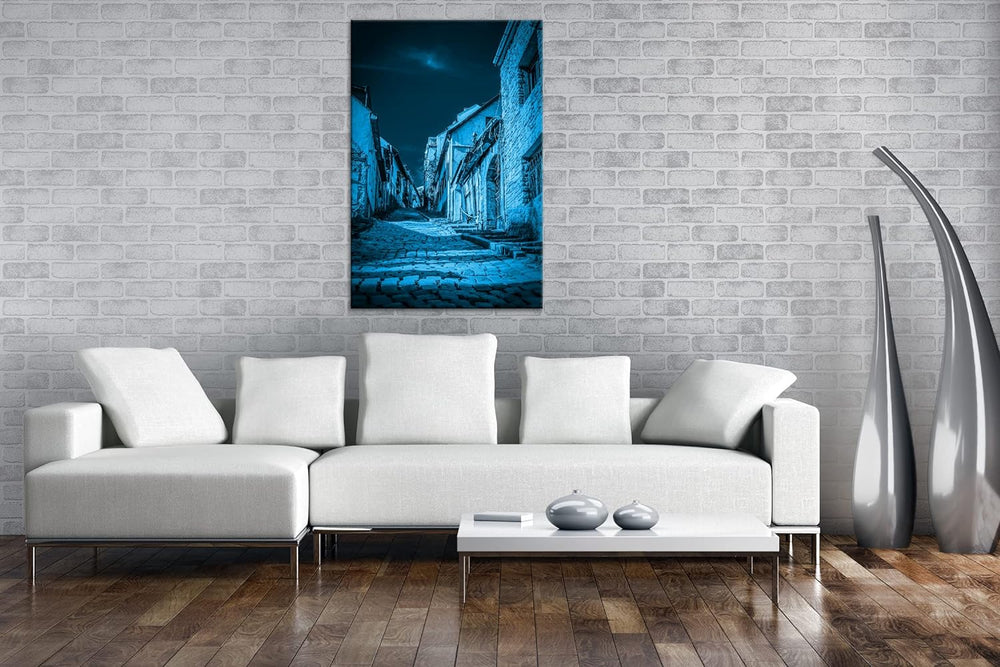 deyoli verwitterte Strasse in Budapest Format 80x60 Effekt: Monocrome Blau als Leinwandbild, Motiv f