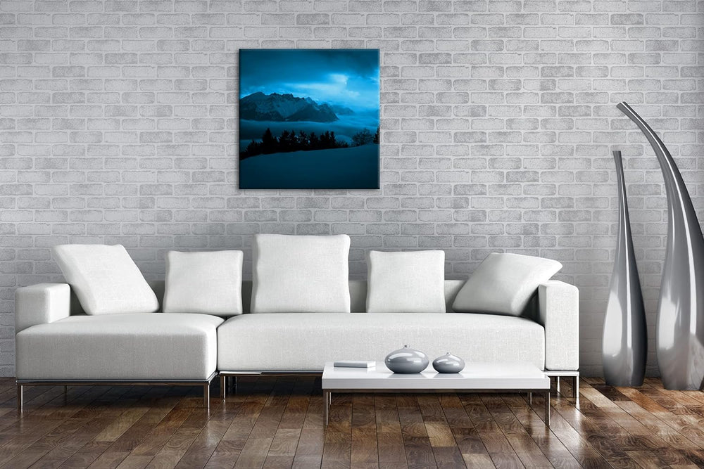 deyoli verschneite Berggipfel Format: 60x60 Effekt: Monocrome Blau als Leinwand, Motiv fertig gerahm