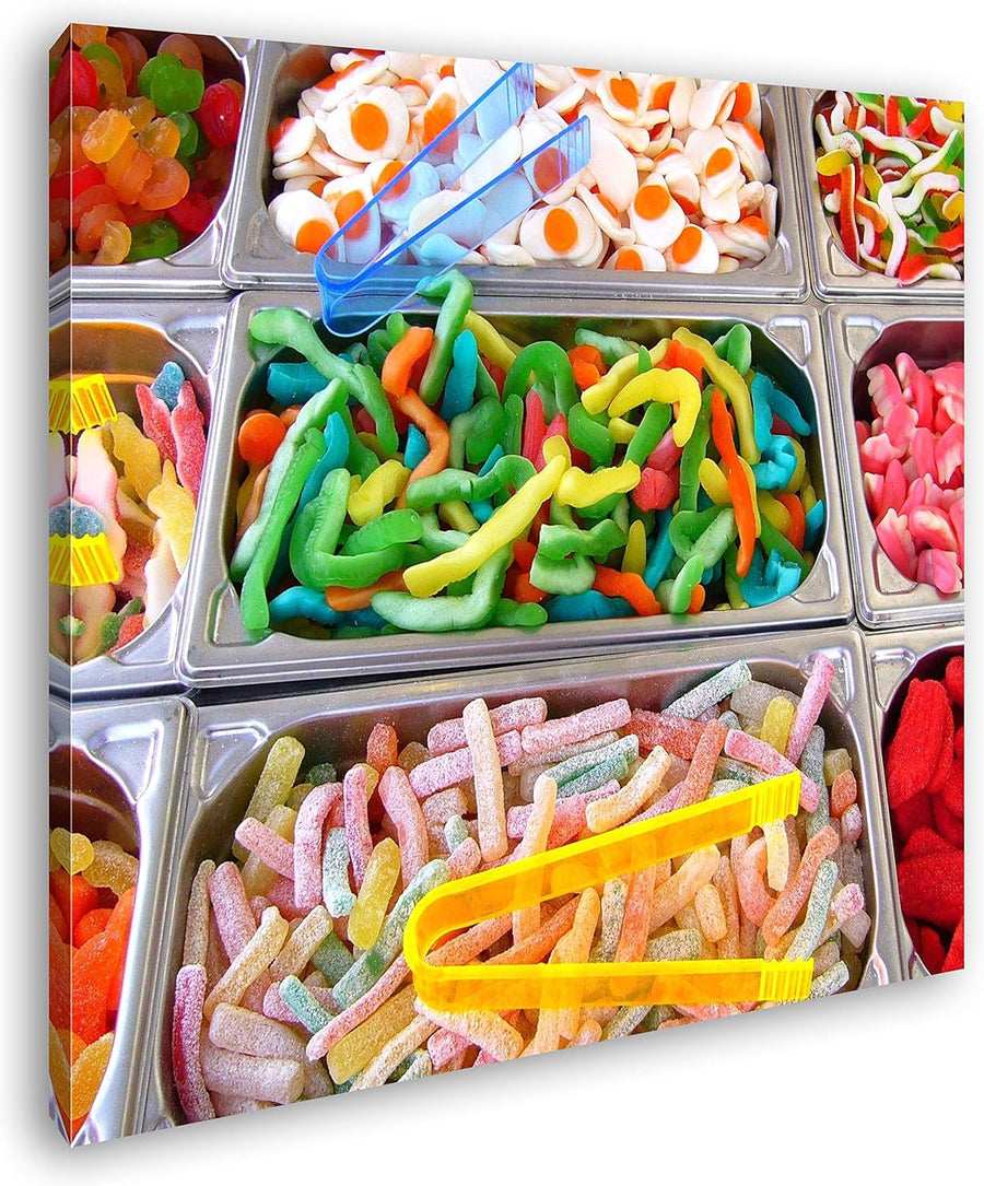 deyoli viele Bunte Süssigkeiten im Format: 60x60 als Leinwandbild, Motiv fertig gerahmt auf Echtholz