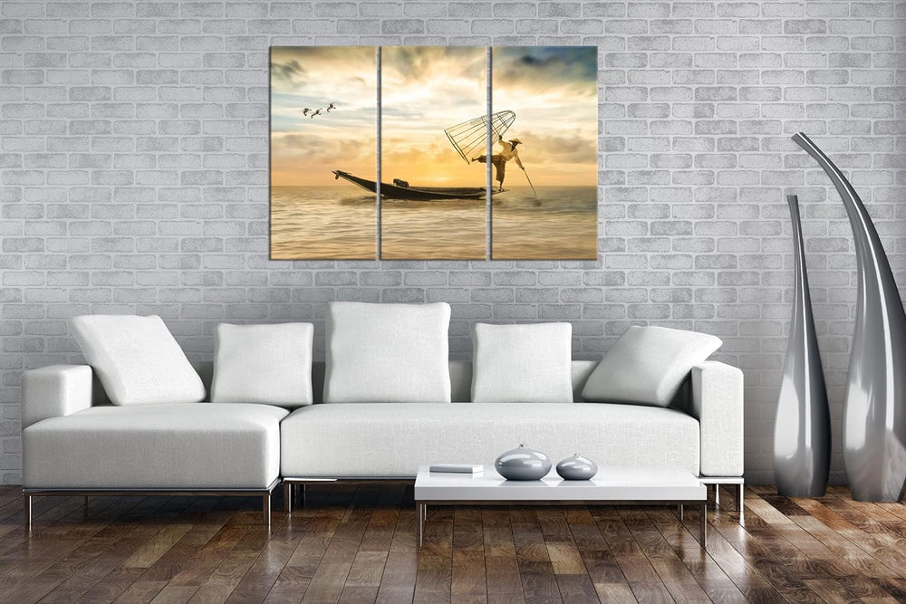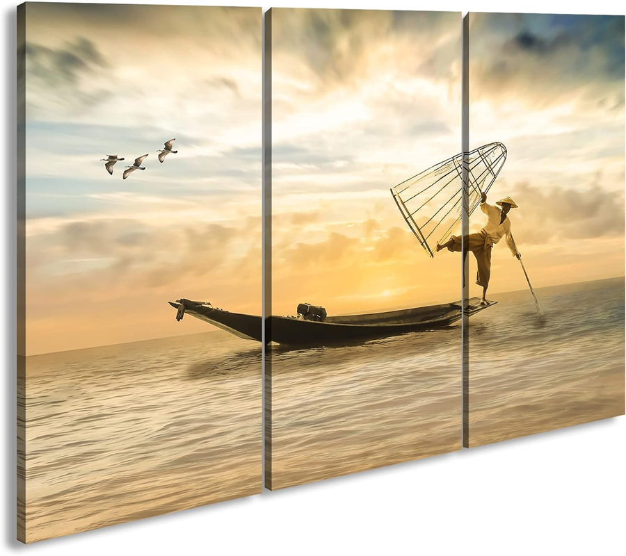 deyoli verspielter Fischer auf seinem Boot Format: 3Teilig als Leinwandbild, Motiv fertig gerahmt au