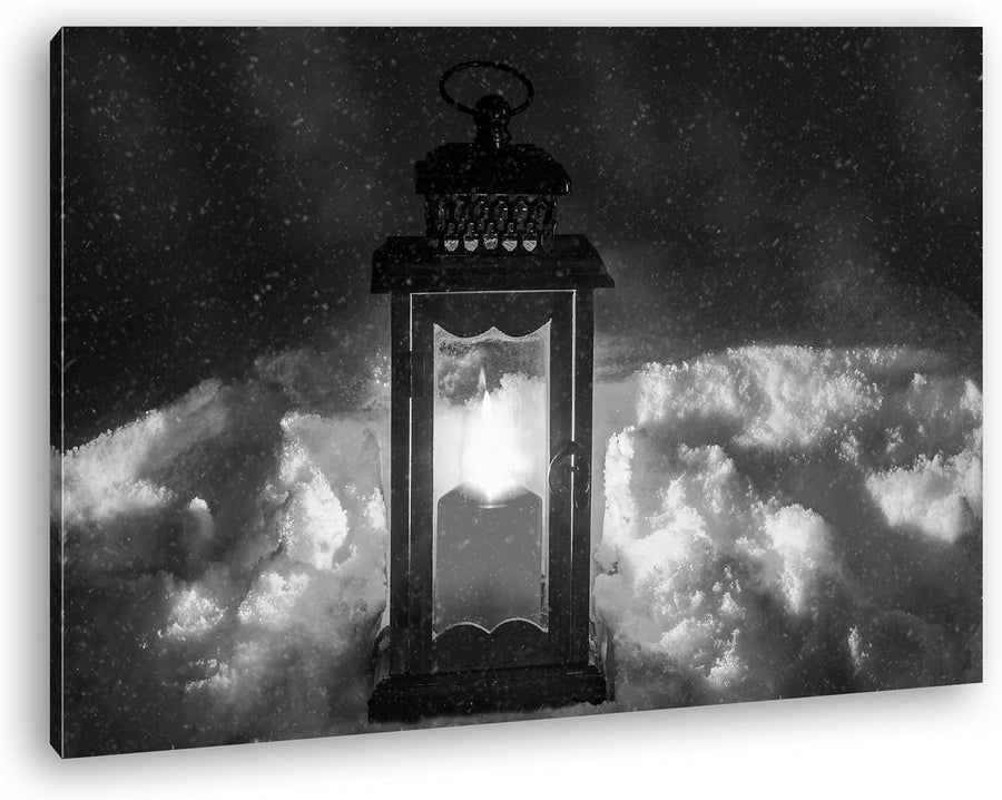 deyoli verschneite Kerzenlaterne Format: 80x60 Effekt: Schwarz/Weiss als Leinwand, Motiv fertig gera