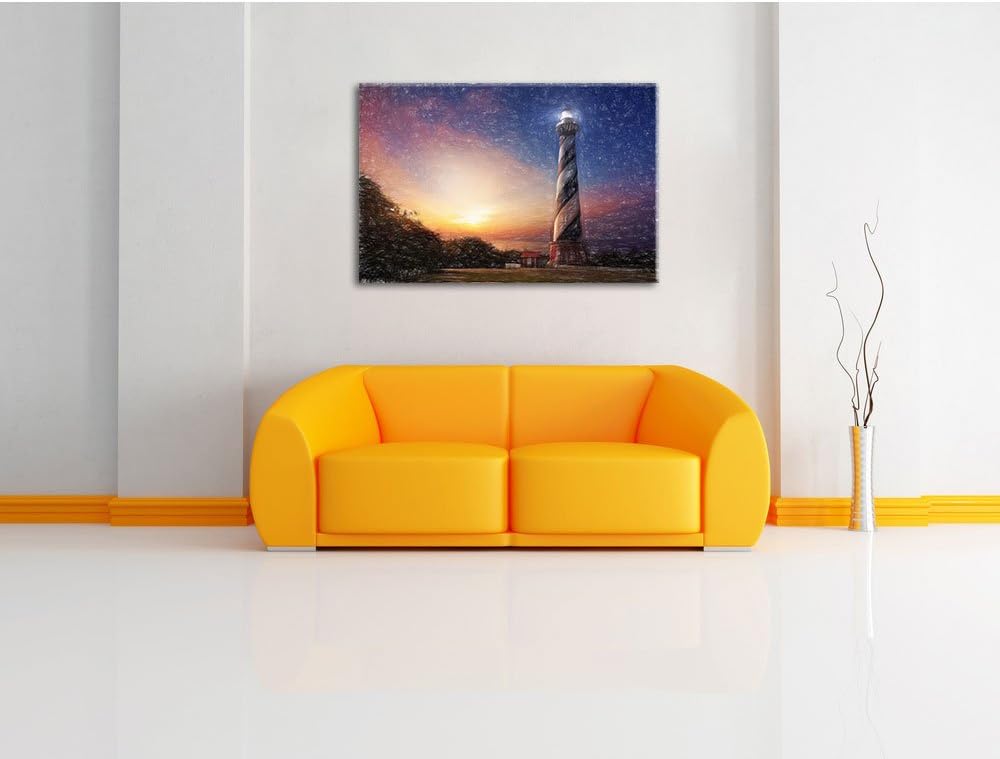 Pixxprint Cape Hatteras Leuchtturm / 100x70cm Leinwandbild bespannt auf Holzrahmen/Wandbild Kunstdru