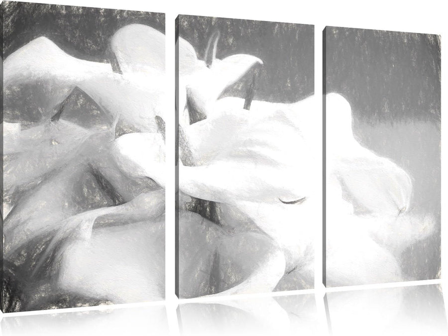 Pixxprint Calla Lilien / 3-Teilig/Gesamtmass 120cm Leinwandbild bespannt auf Holzrahmen/Wandbild Kun