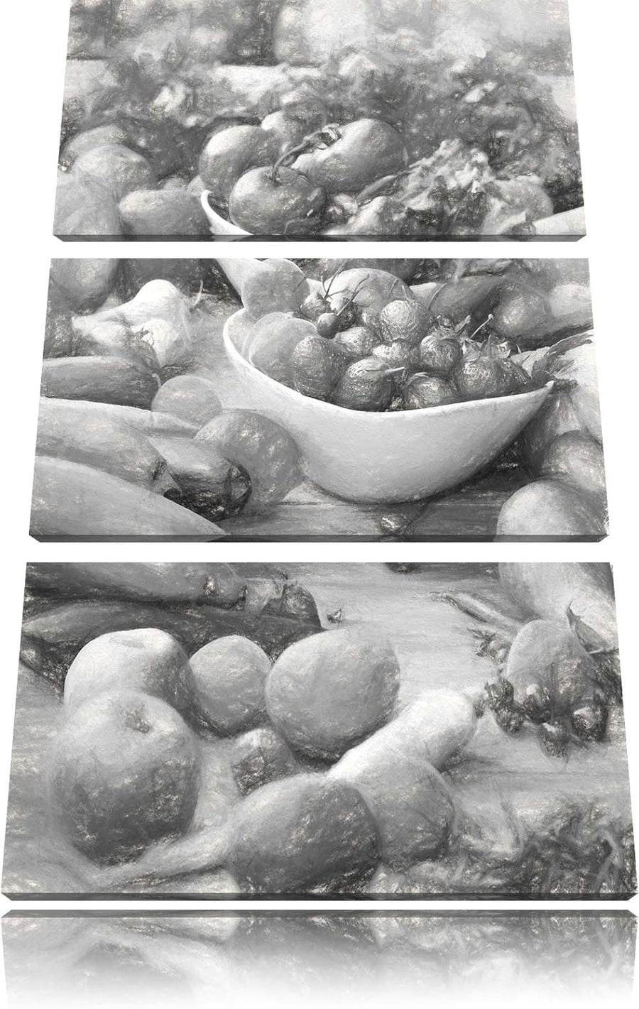 Pixxprint Buntes Obst und Gemüse Kohle Zeichnung Effekt 3-Teiler Leinwandbild 120x80 Bild auf Leinwa