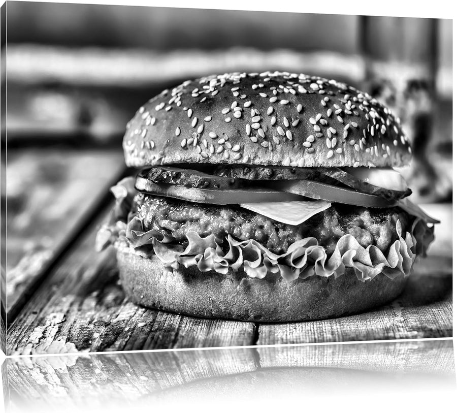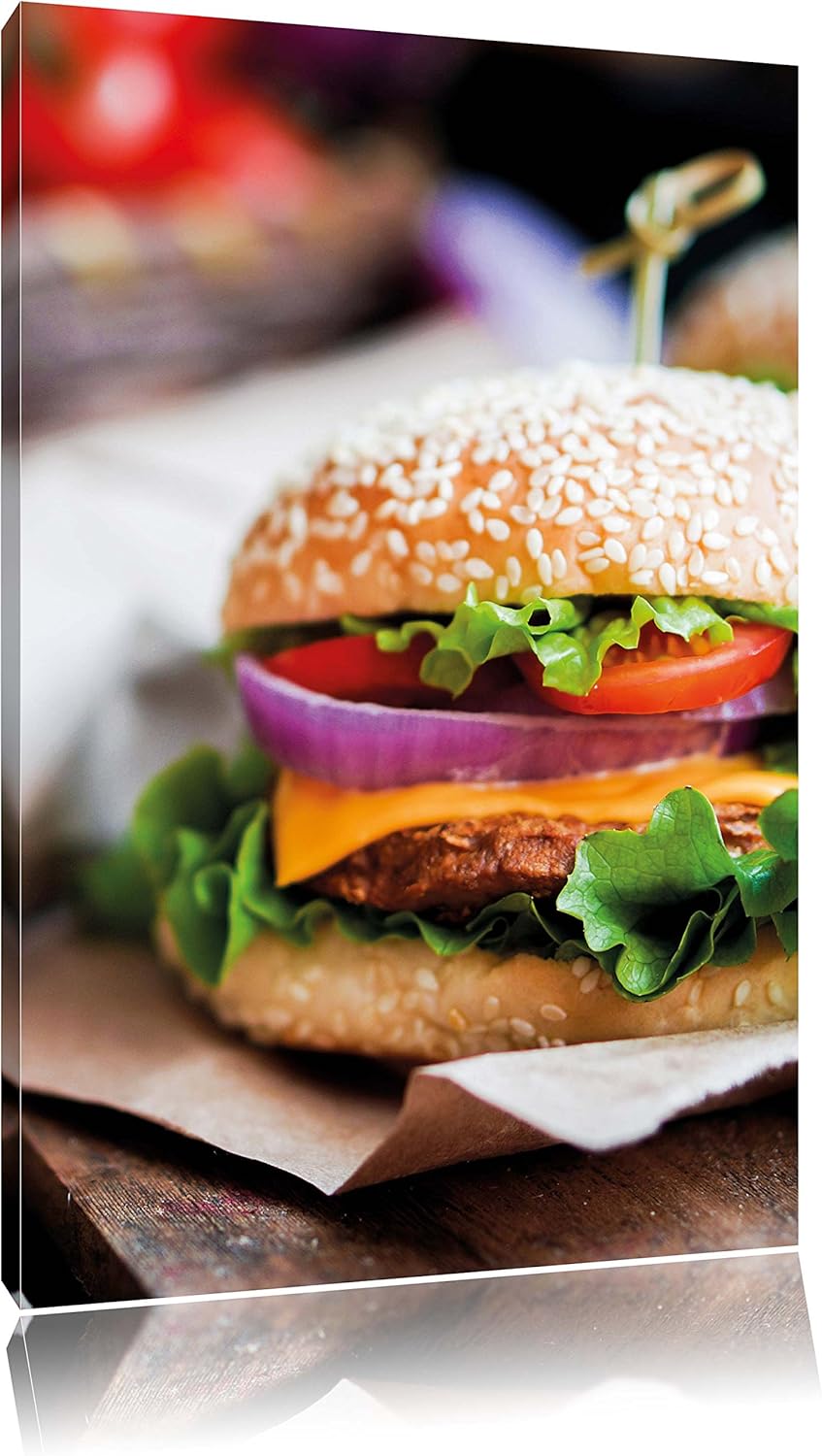 Pixxprint Burger Hamburger Fast als Leinwandbild/Grösse: 100x70 cm/Wandbild/Kunstdruck/fertig bespan