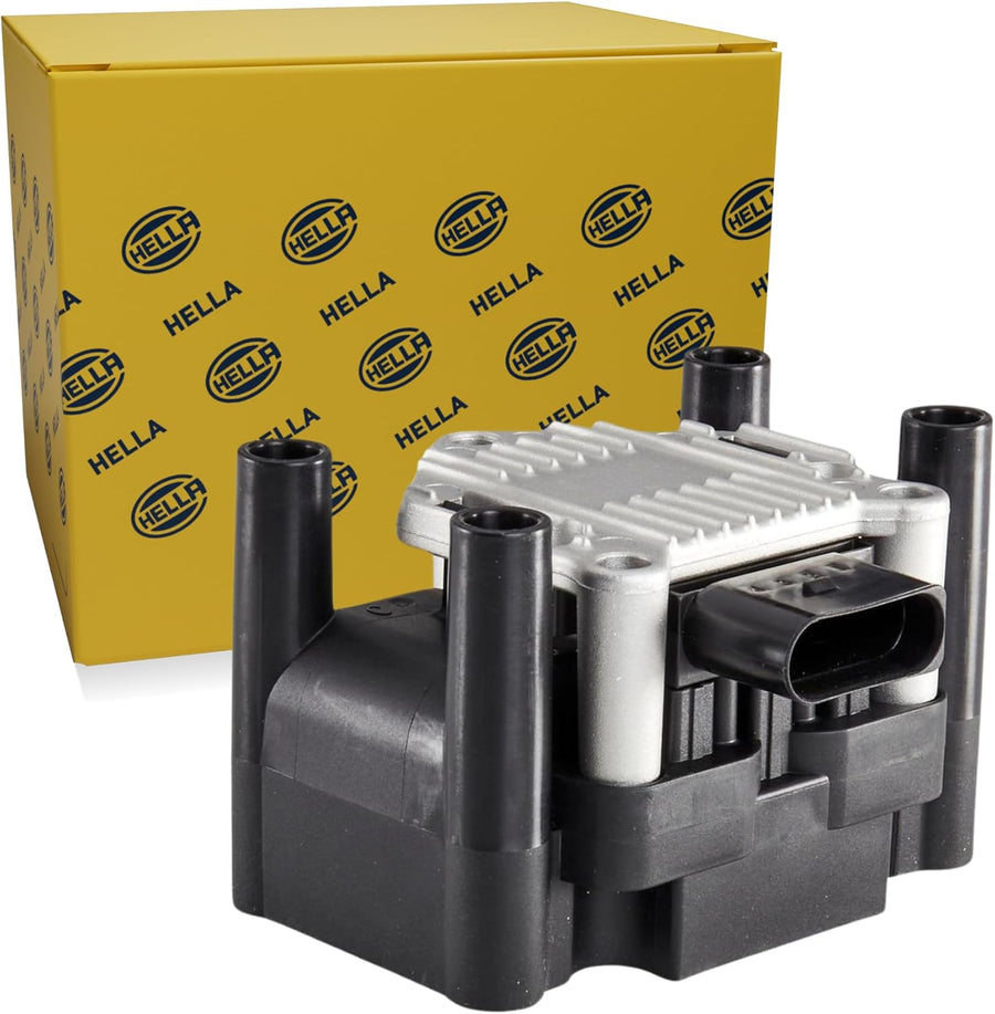 HELLA 5DA 358 000-581 Zündspule - 12V - 4-polig - Blockzündspule/inkl. Zündspulenleitung - geschraub