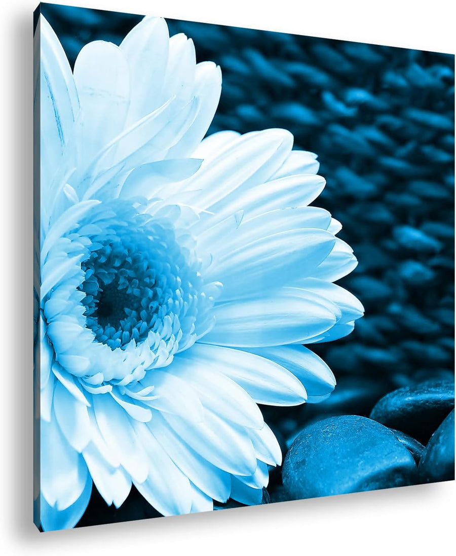 deyoli Weisse Gerbera Format: 80x60 Effekt: Monocrome Blau als Leinwandbild, Motiv fertig gerahmt au