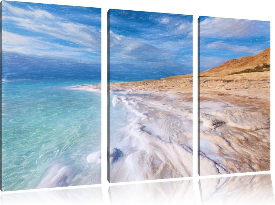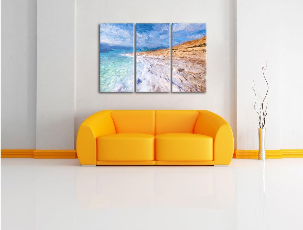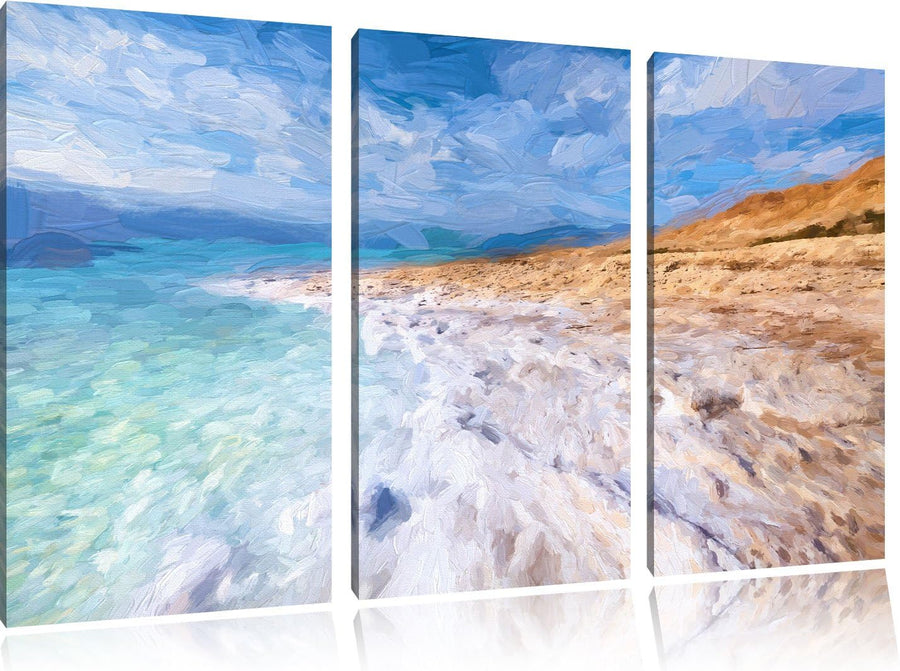 Pixxprint Das Tote Meer bei Tag Pinsel Effekt 3-Teiler Leinwandbild 120x80 Bild auf Leinwand