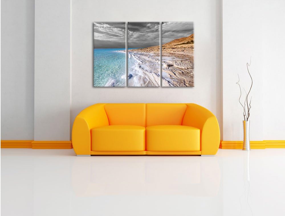 Pixxprint Das Tote Meer bei Tag 3-Teiler Leinwandbild 120x80 Bild auf Leinwand