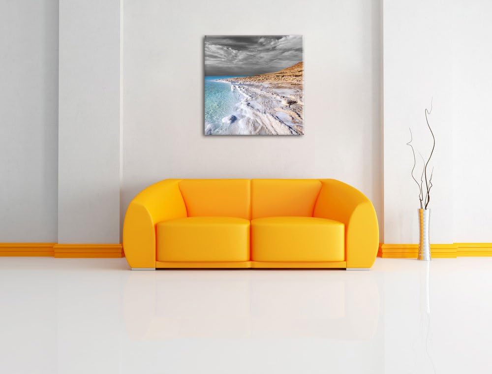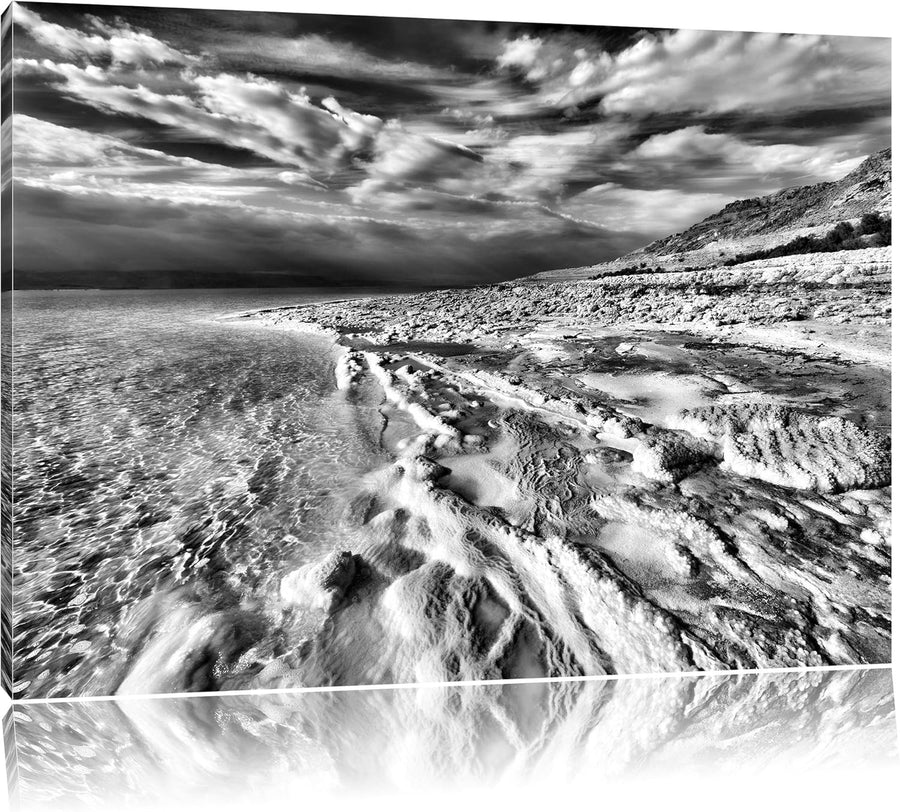 Pixxprint Das Tote Meer bei Tag Schwarz/Weiss, Format: 70x70 auf Leinwand, 70x70
