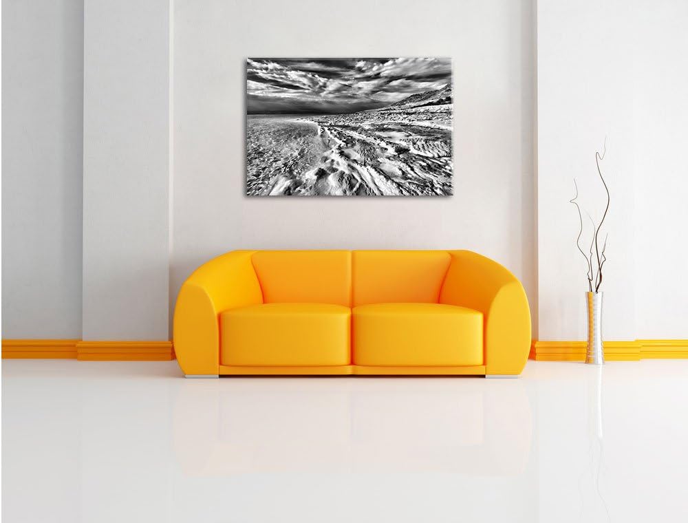 Pixxprint Das Tote Meer bei Tag Schwarz/Weiss 3-Teiler Leinwandbild 120x80 Bild auf Leinwand