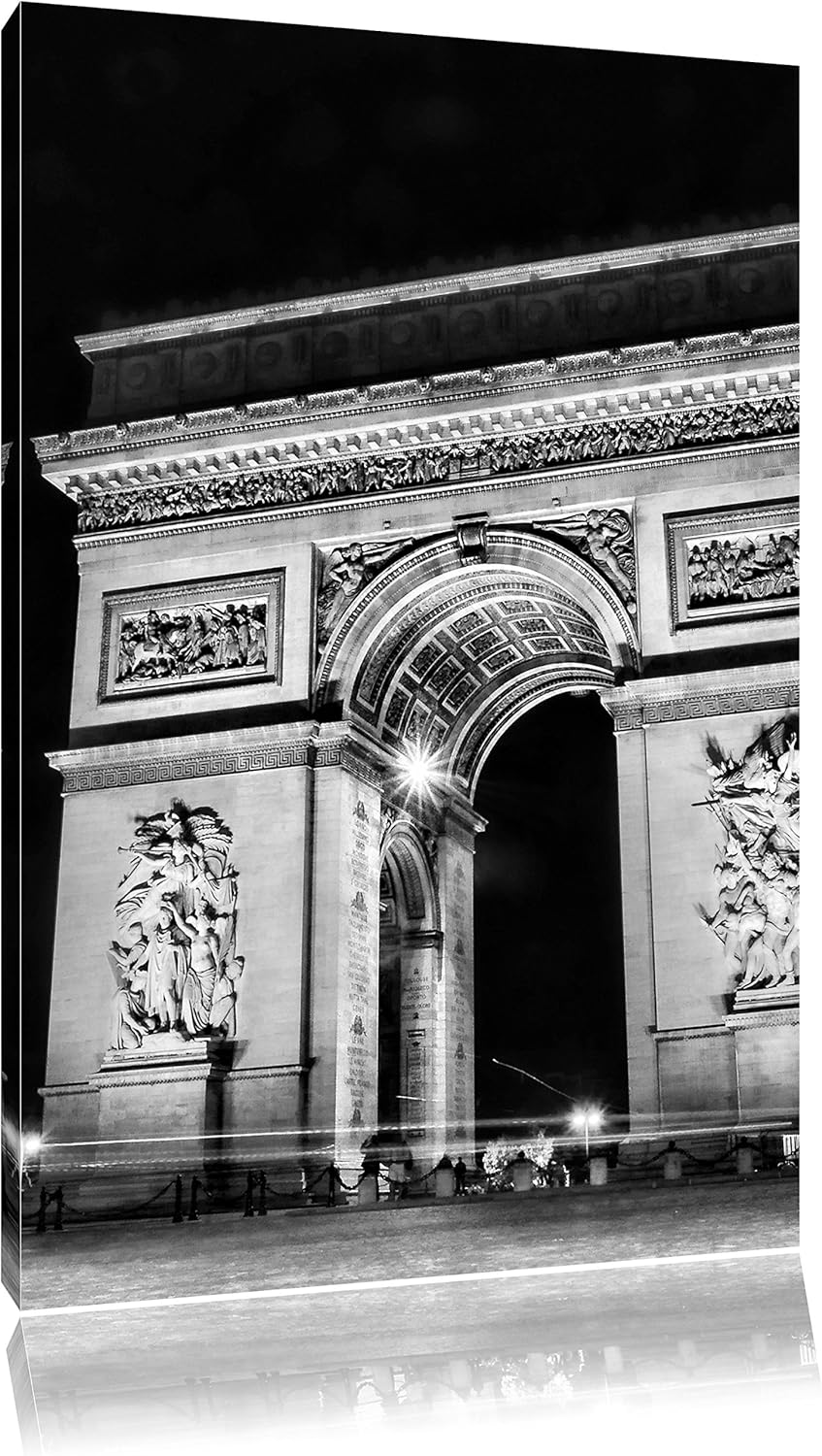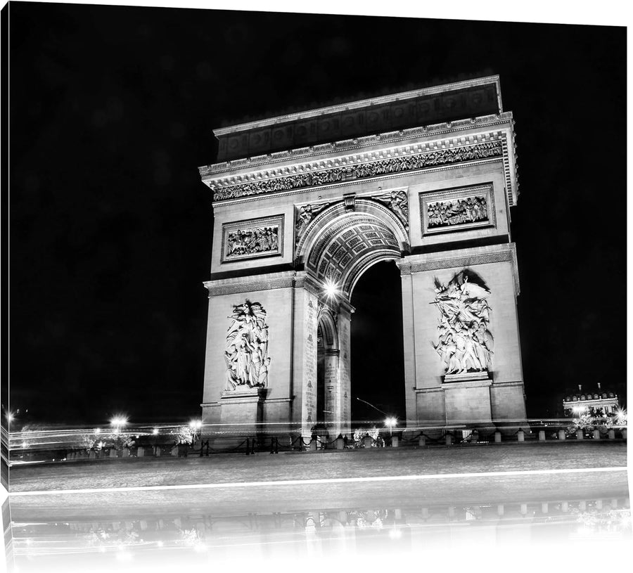 Pixxprint Dark Triumphbogen bei Nacht / 100x70cm Leinwandbild bespannt auf Holzrahmen/Wandbild Kunst