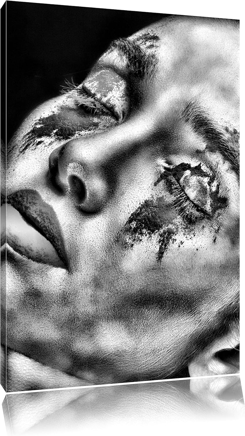 Pixxprint Dark schwarzes Katzengesicht als Leinwandbild/Grösse: 100x70 cm/Wandbild/Kunstdruck/fertig