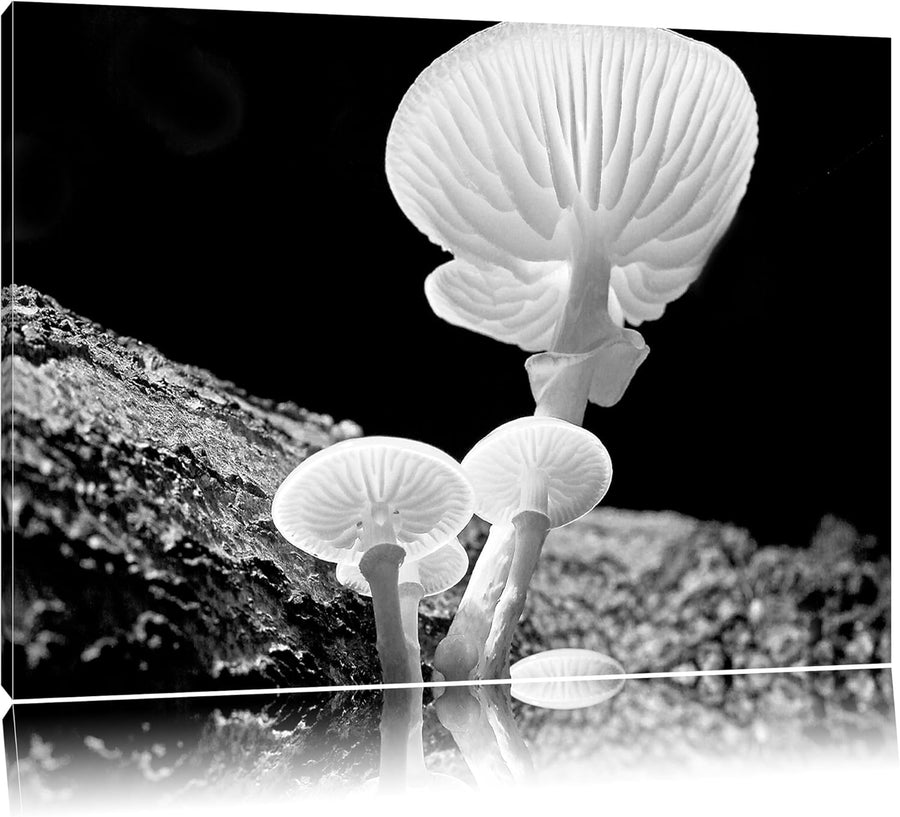 Pixxprint Dark weisse Pilzeauf Leinwand, XXL riesige Bilder fertig gerahmt mit Keilrahmen, Kunstdruc