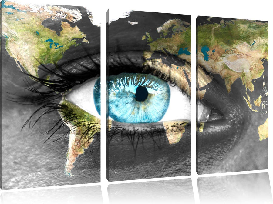 Pixxprint Die Erde gezeichnet auf EIN Gesicht 3-Teiler Leinwandbild 120x80 Bild auf Leinwand