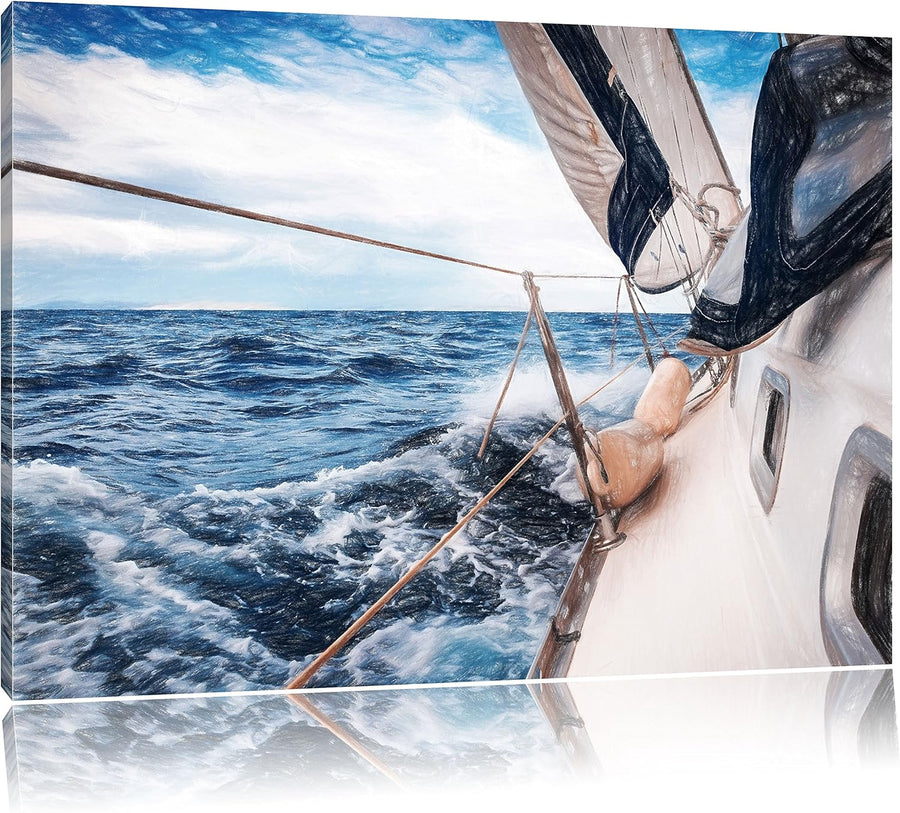 Pixxprint Die weissen Segel der Yacht als Leinwandbild/Grösse: 100x70 cm/Wandbild/Kunstdruck/fertig