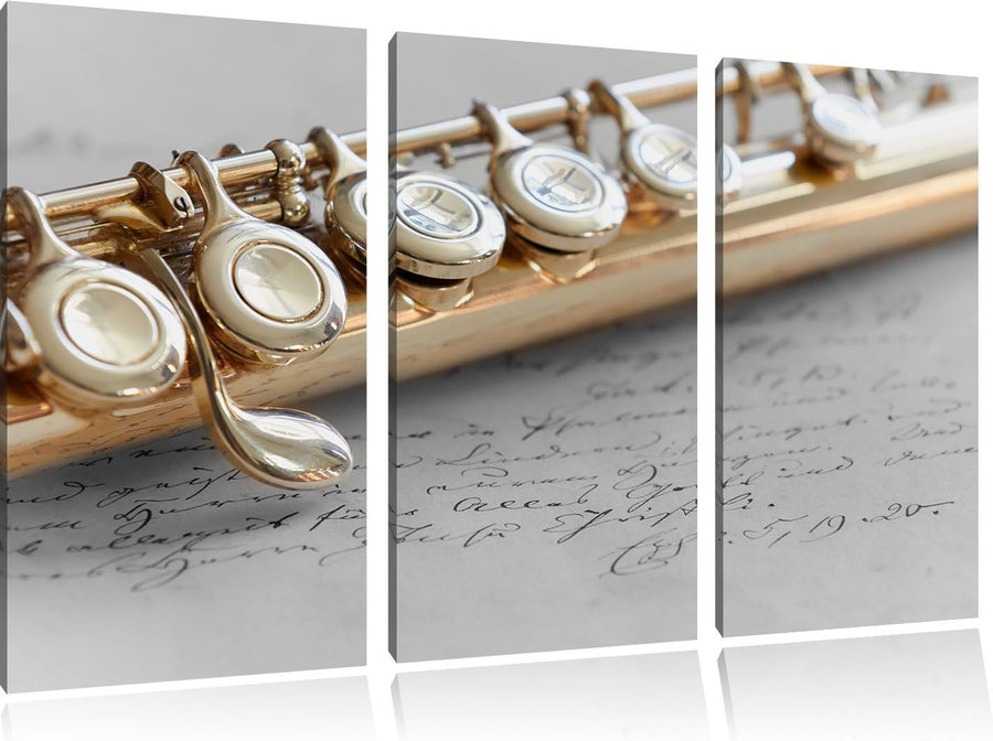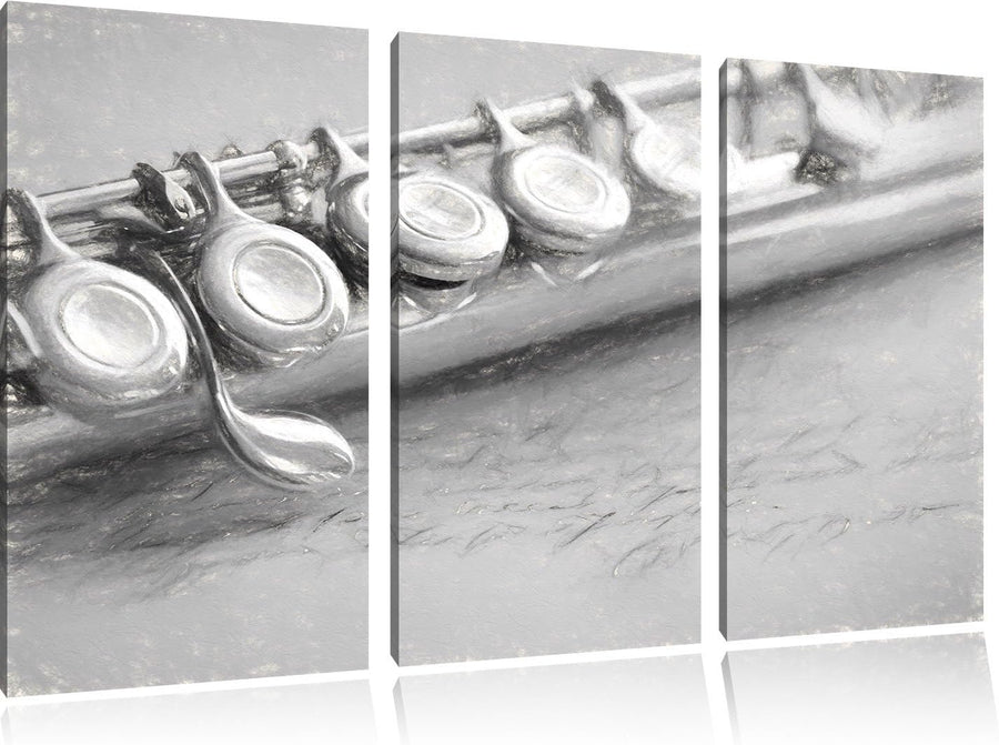 Pixxprint Detailaufnahme Einer Querflöte Kohle Zeichnung Effekt 3-Teiler Leinwandbild 120x80 Bild au