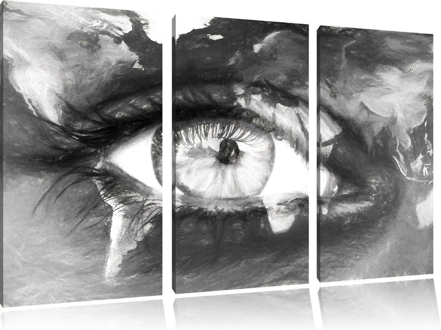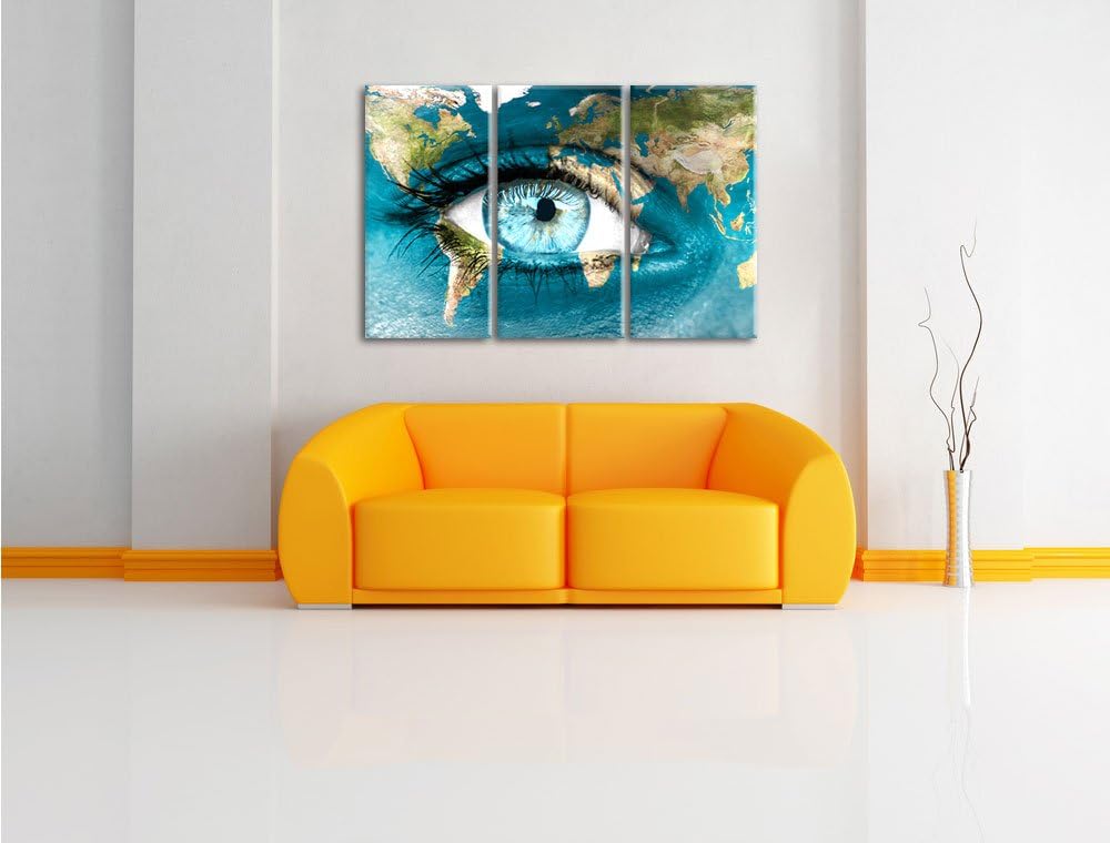 Pixxprint Die Erde gezeichnet auf EIN Gesicht Kohle Zeichnung Effekt 3-Teiler Leinwandbild 120x80 Bi