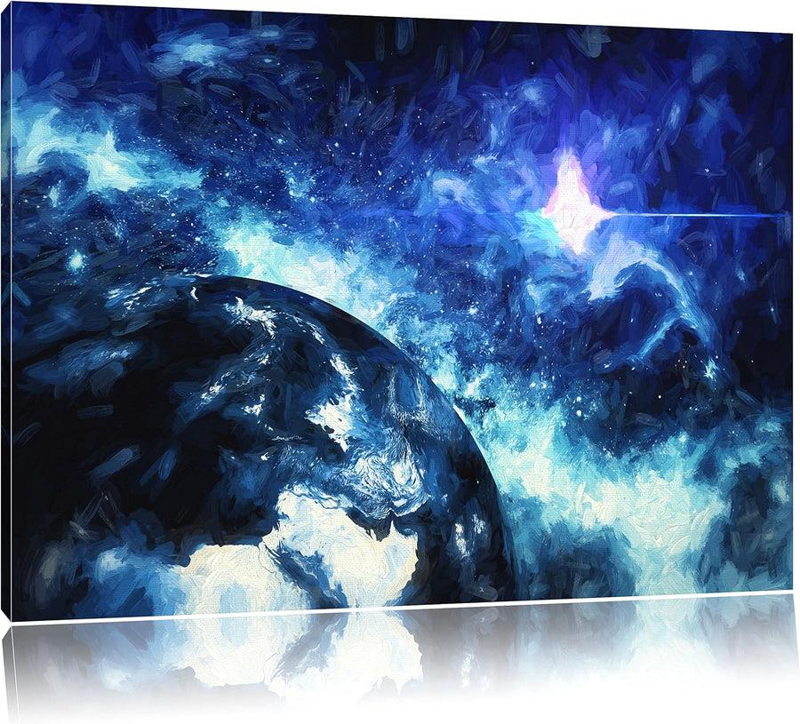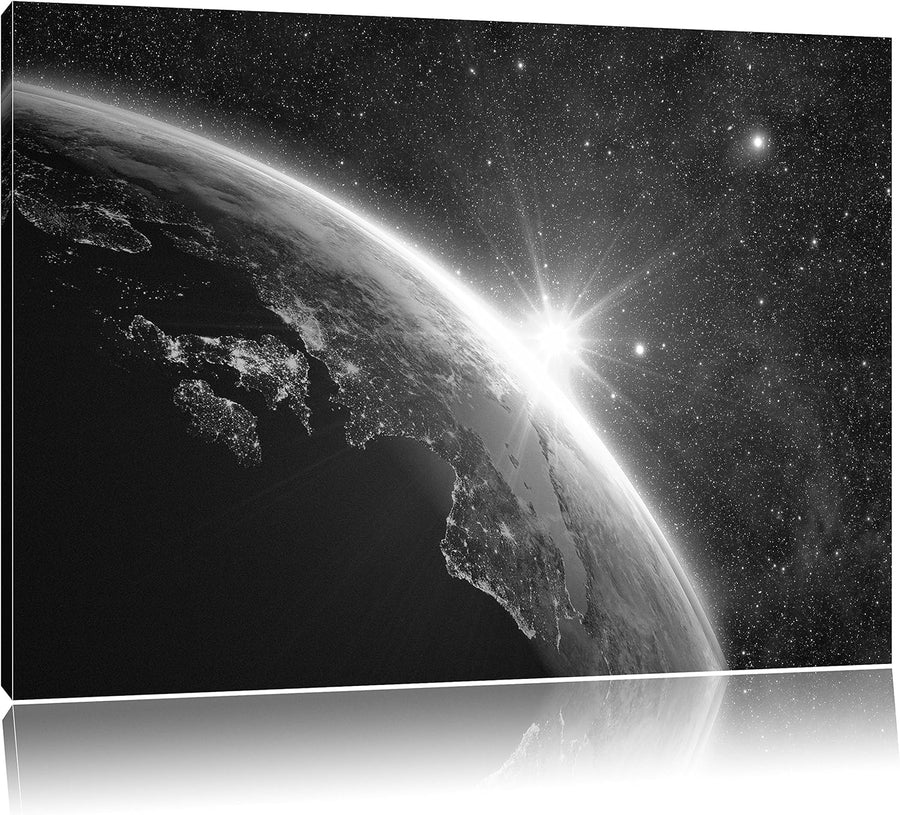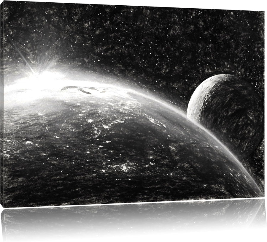 Pixxprint Die Sonne und Erde im Weltall Kunst B&W als Leinwandbild/Grösse: 100x70 / Wandbild/Kunstdr