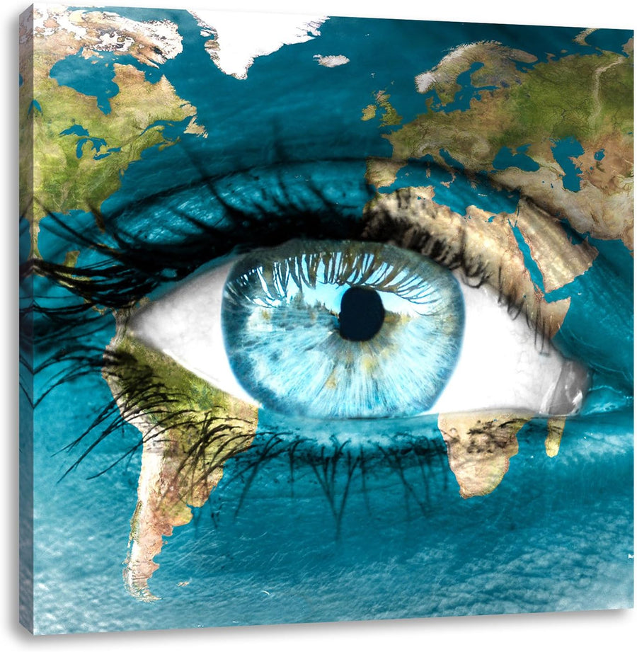 Pixxprint Die Erde gezeichnet auf EIN Gesicht, Format: 70x70 auf Leinwand, 70x70