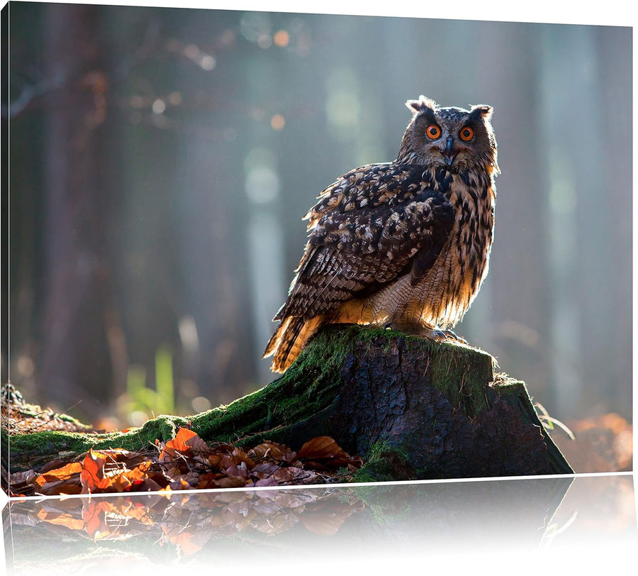 Pixxprint die Eule auf dem Baumstamm als Leinwandbild/Grösse: 100x70 cm/Wandbild/Kunstdruck/fertig b