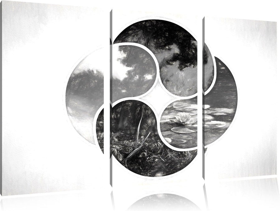 Pixxprint Die Vier Elemente Kunst B&W / 3-Teilig/Gesamtmass 120cm Leinwandbild bespannt auf Holzrahm