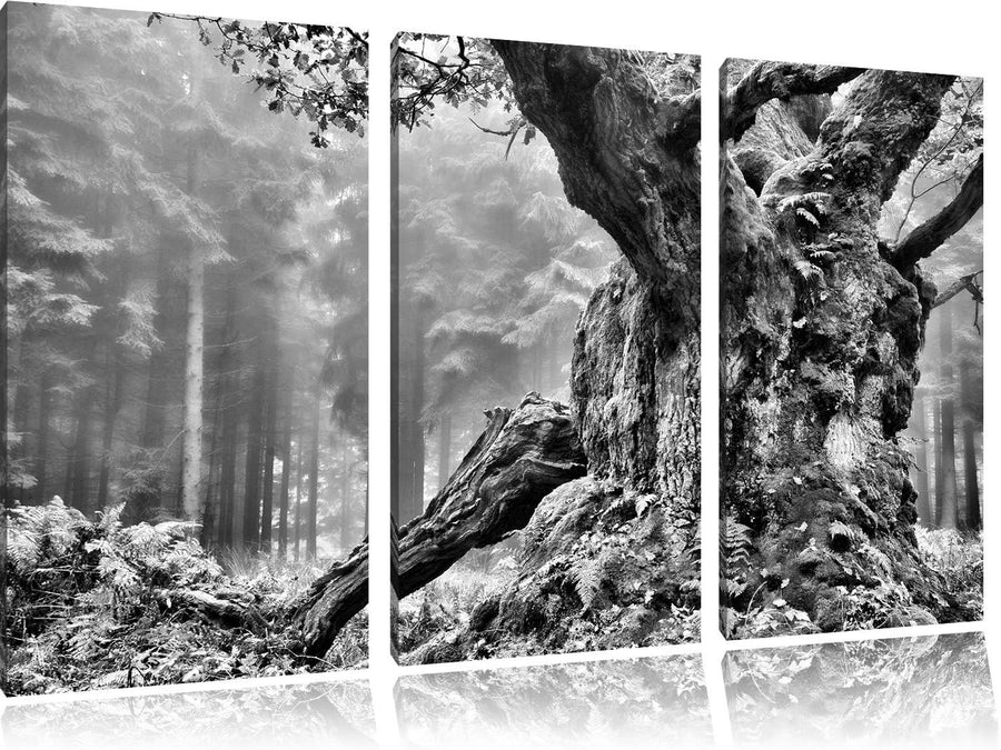 Pixxprint Dicker Baum im Wald im Moos als Leinwandbild/Grösse: 3 Teilig (120x80) cm/Wandbild/Kunstdr