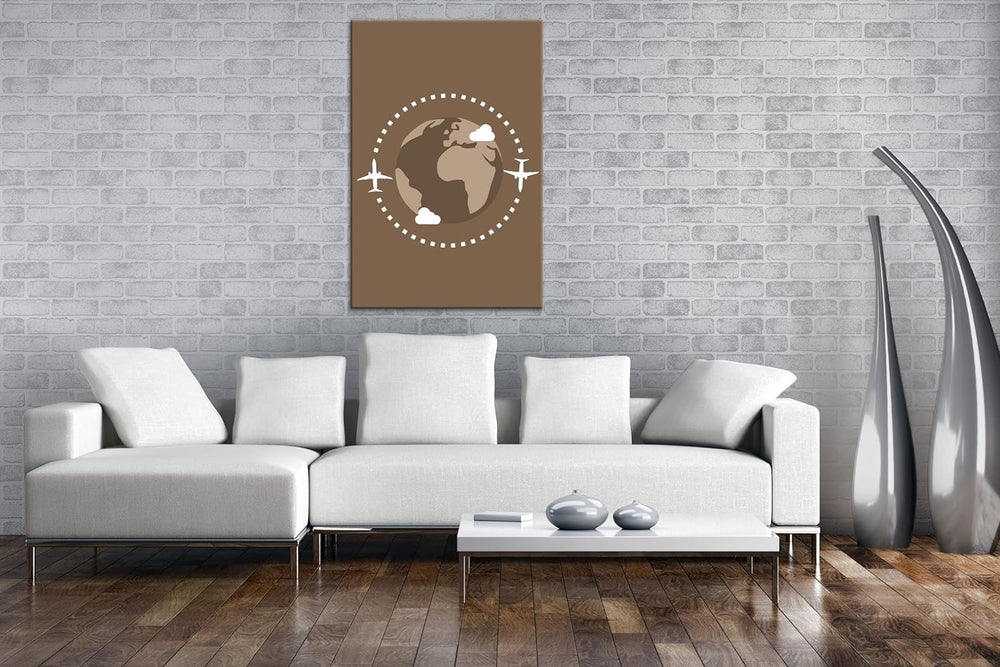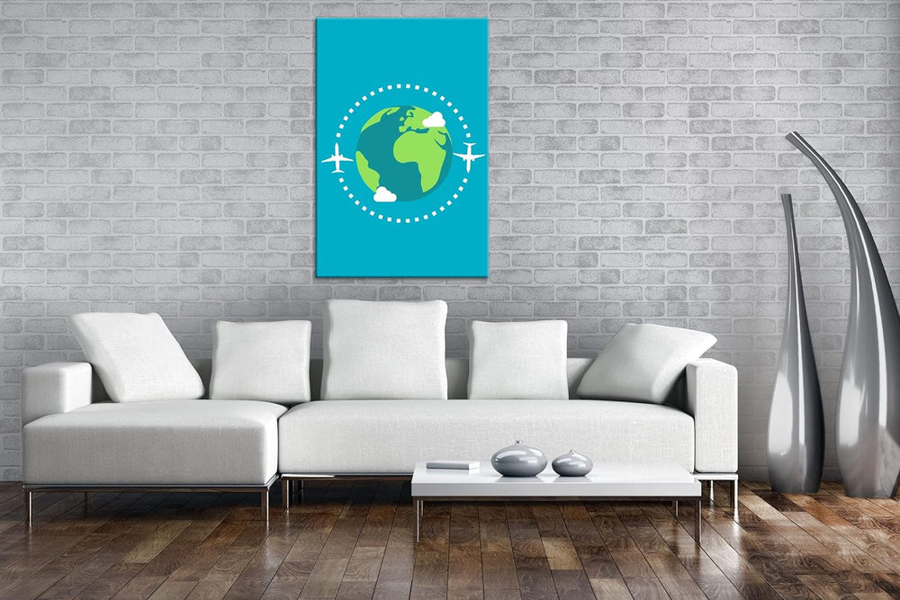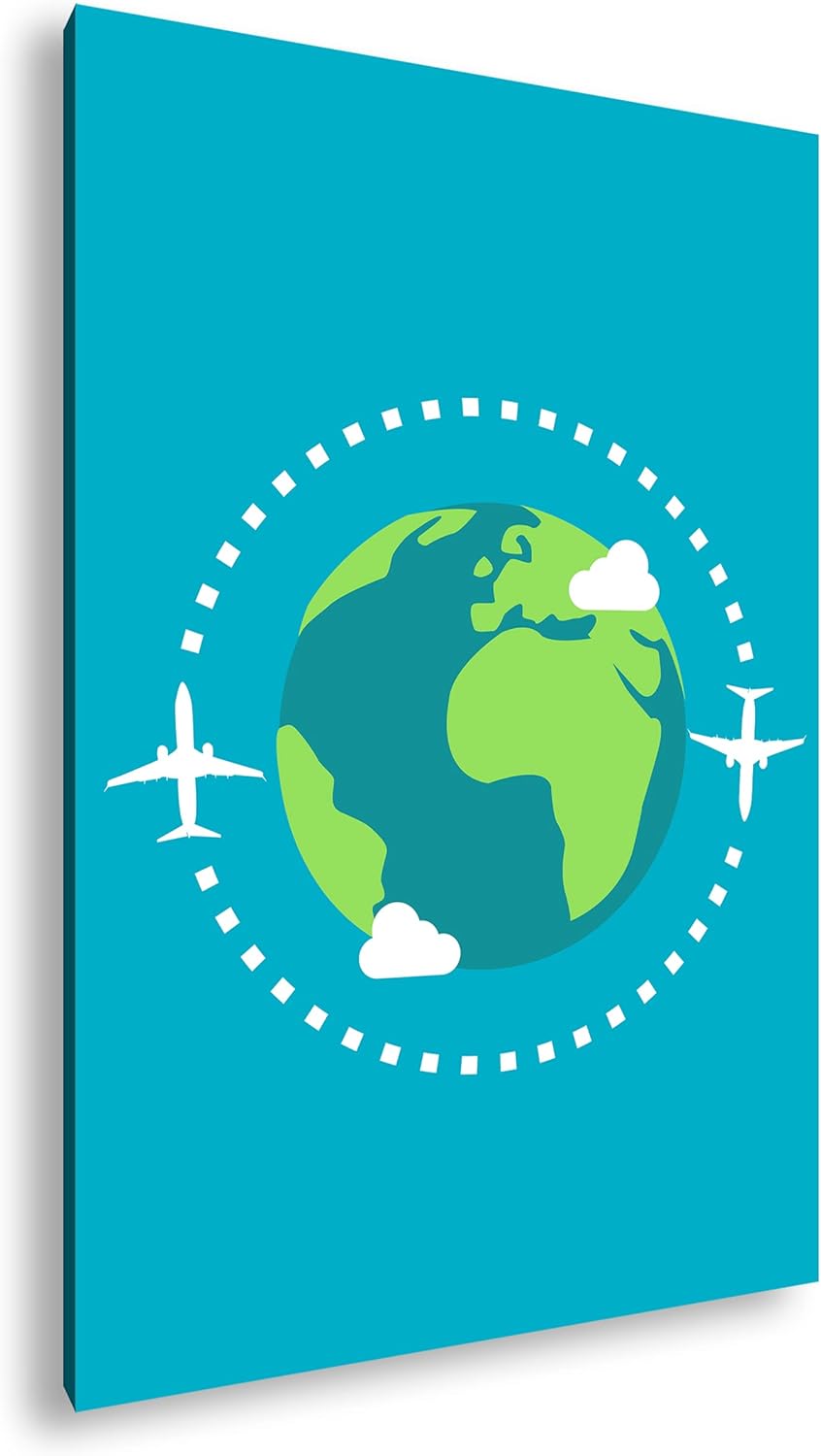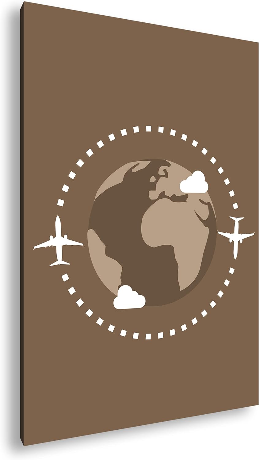 Flugzeug um die Erde Logo Format: 100x70 als Leinwandbild, Motiv fertig gerahmt auf Echtholzrahmen,
